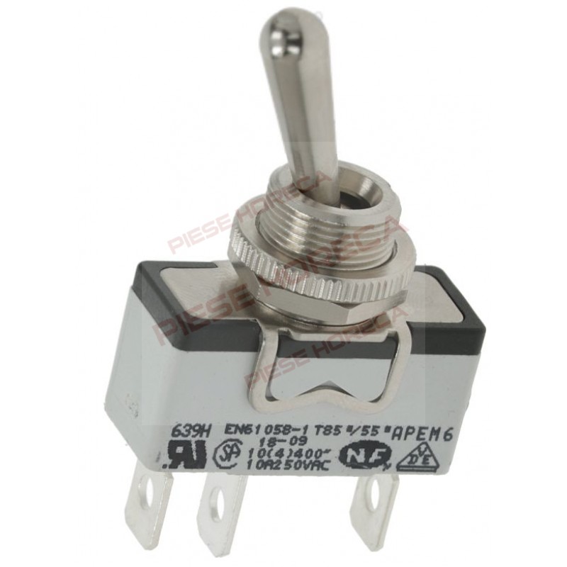 Intrerupator cu 3 pozitii, ON-OFF-ON, filet de M12x 0.75, 15A la maxim 250V