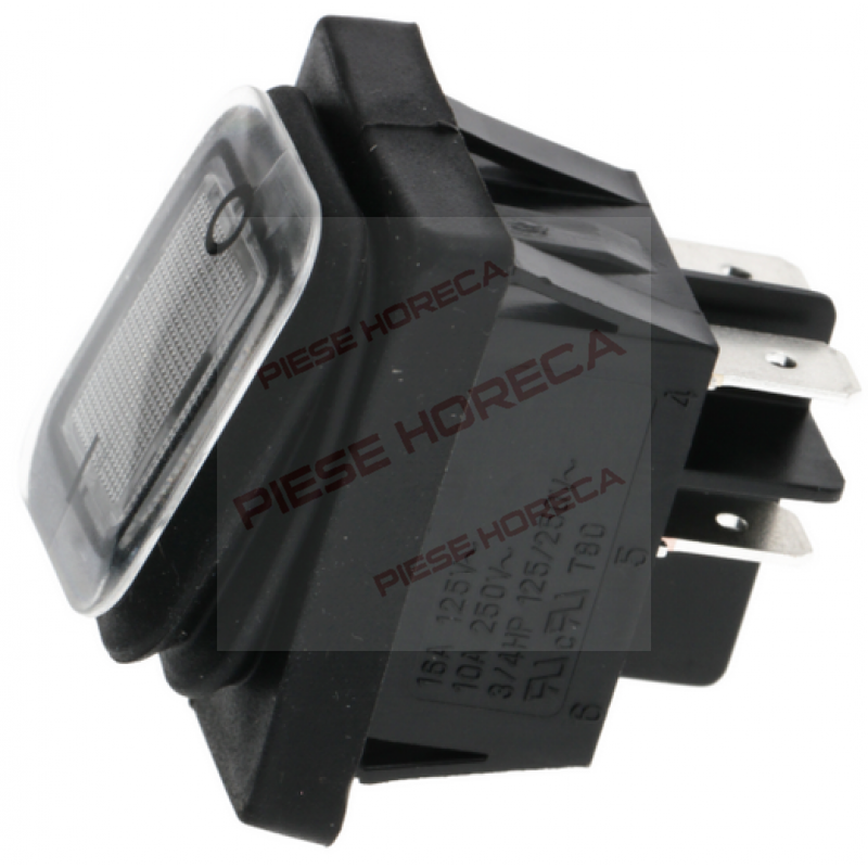 Comutator cu burduf de protectie din cauciuc, iluminat, culoare alba, capacitate 16/10A la 125/250V bipolar,